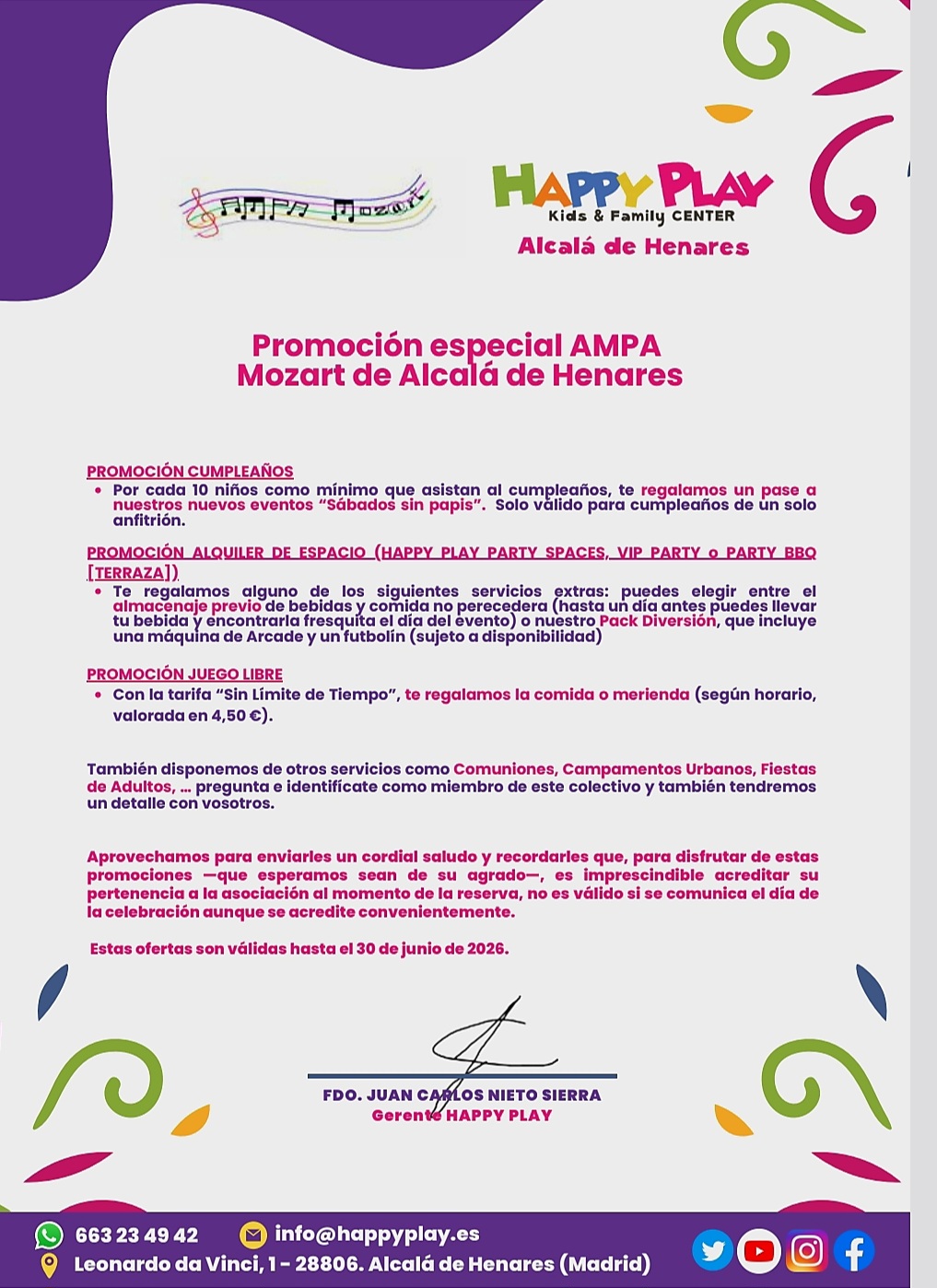 HAPPY PLAY . KIDS AND FAMILY CENTER. PROMOCIONES CURSO 25-26