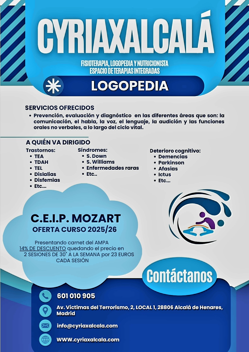 LOGOPEDIA CYRIAXALCALA. Espartales. Descuento curso 25-26